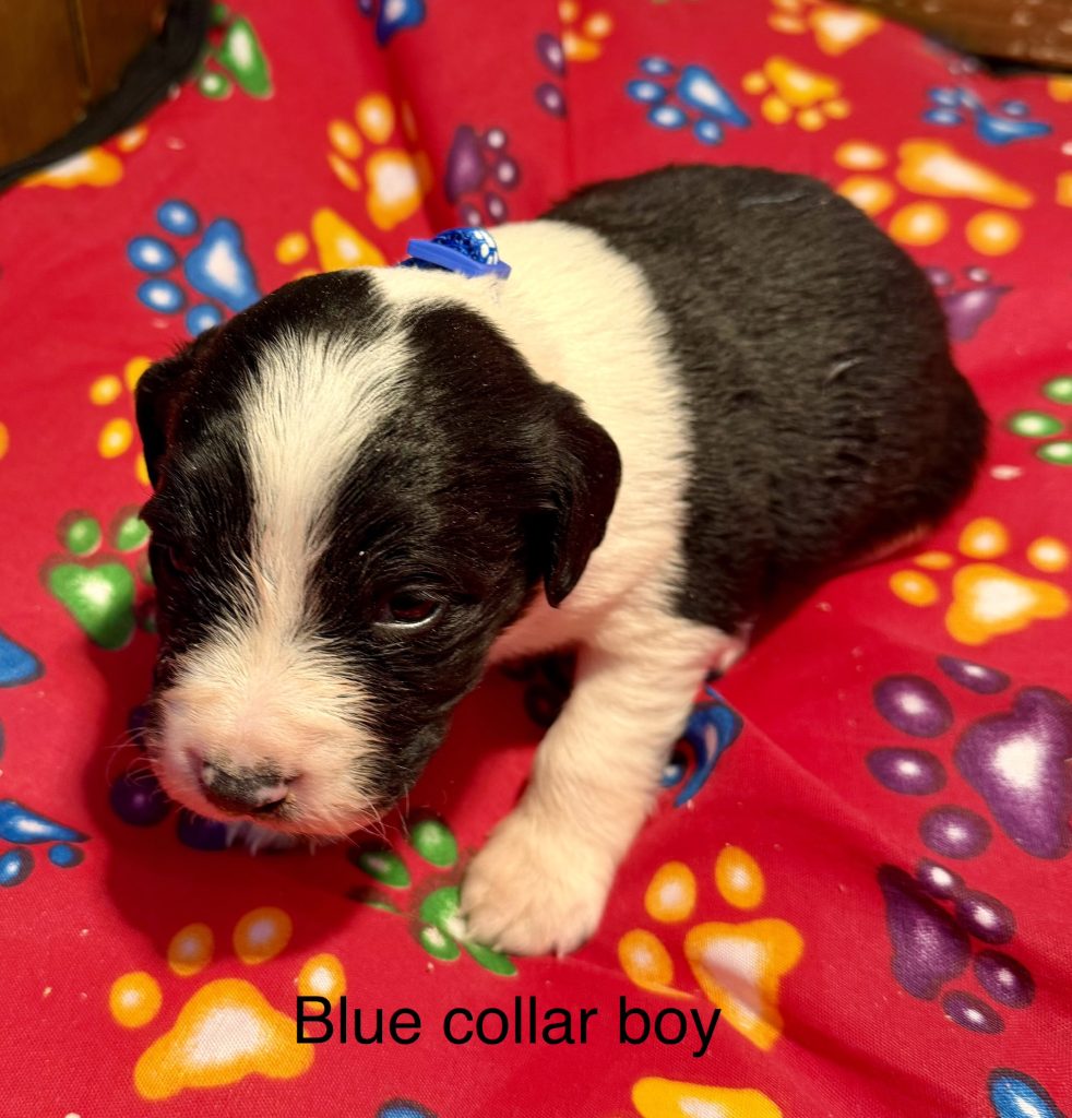Mum is a sweet, kind and friendly English Springer Spaniel with an amazing temperament. Dad is my daughter’s working Border Collie from working lines. Both parents are extensively health tested for the usual genetic diseases found in these breeds. This means that puppies will also be unaffected by all of these diseases. All puppies are genetically clear of, and will not develop, PRA. Bred for health and temperament and reared with the benefit of over thirty years’ experience, these are outstanding puppies. I haven’t had Sprollie puppies for several years, I’ve been waiting for the right parent combination 🙂